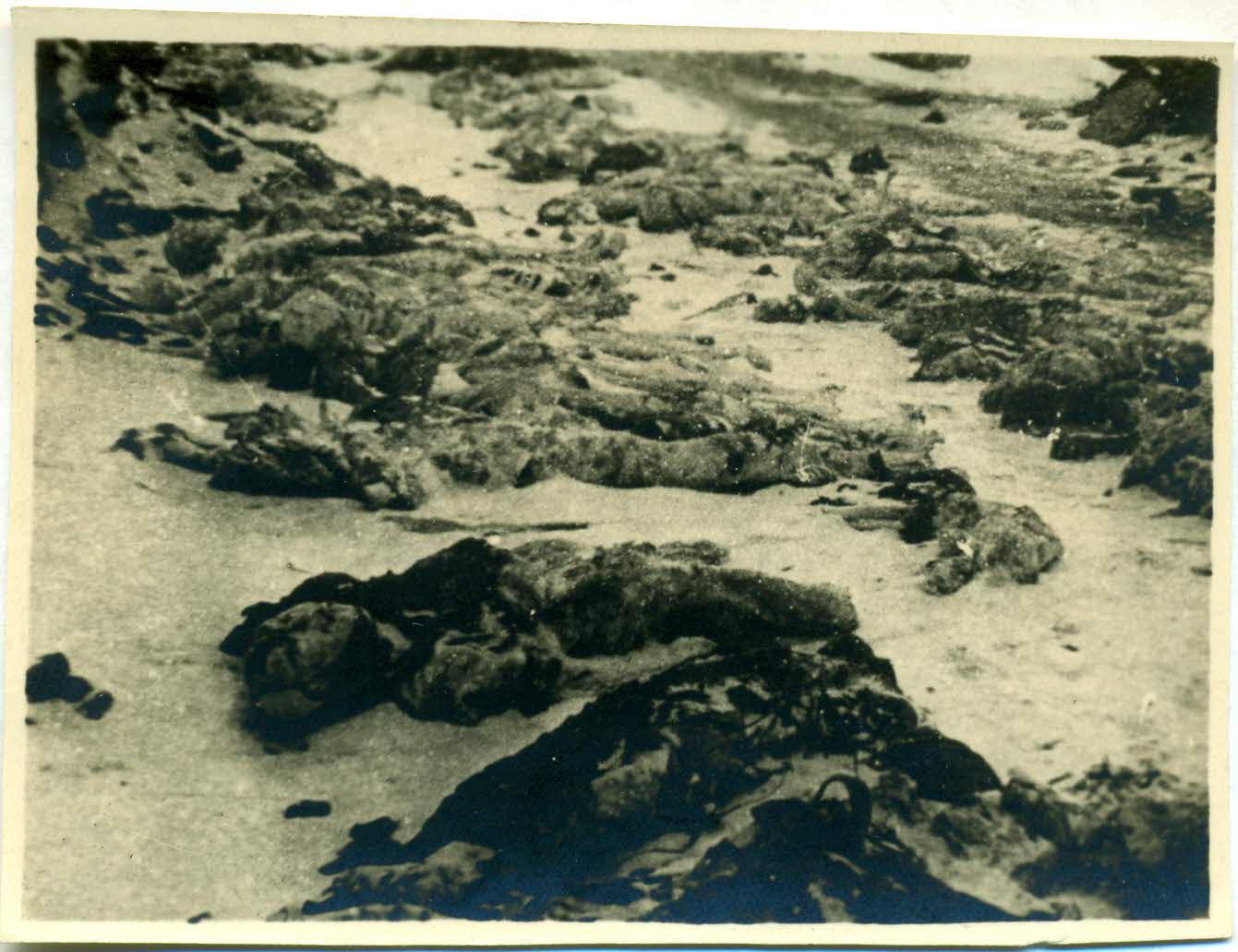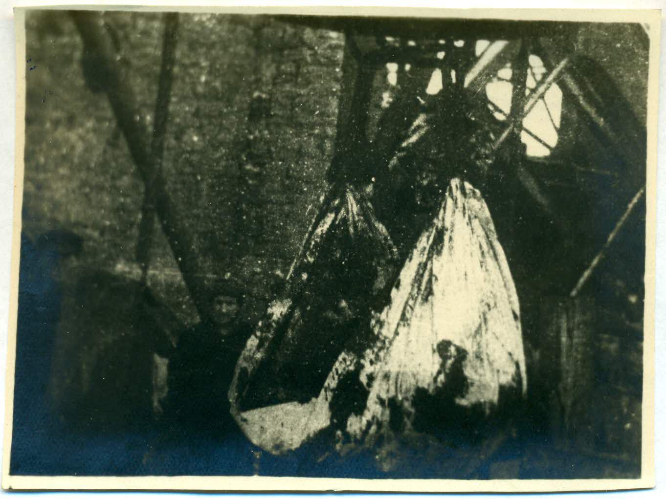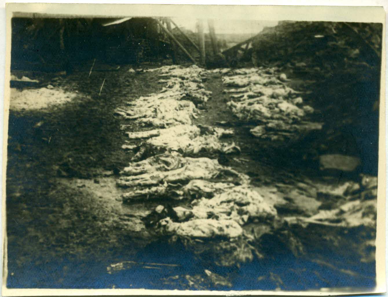 Фото: Тіла жертв, скинутих у жерло шахти зв'язаними дротом по двоє (м. Сталіно).