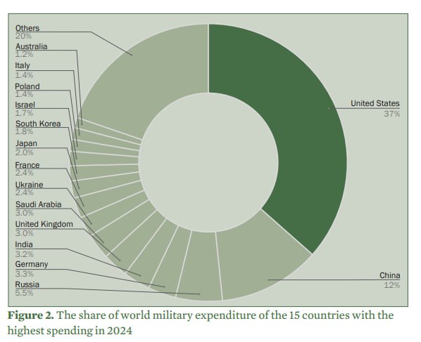 Згідно з даними, значну частину бюджету США у 2024 році спрямували на модернізацію військового потенціалу та ядерного арсеналу Штатів з метою збереження стратегічної переваги над росією та Китаєм. Загалом європейські члени НАТО витратили 454 млрд доларів — 30% загальних витрат у всьому Альянсі.