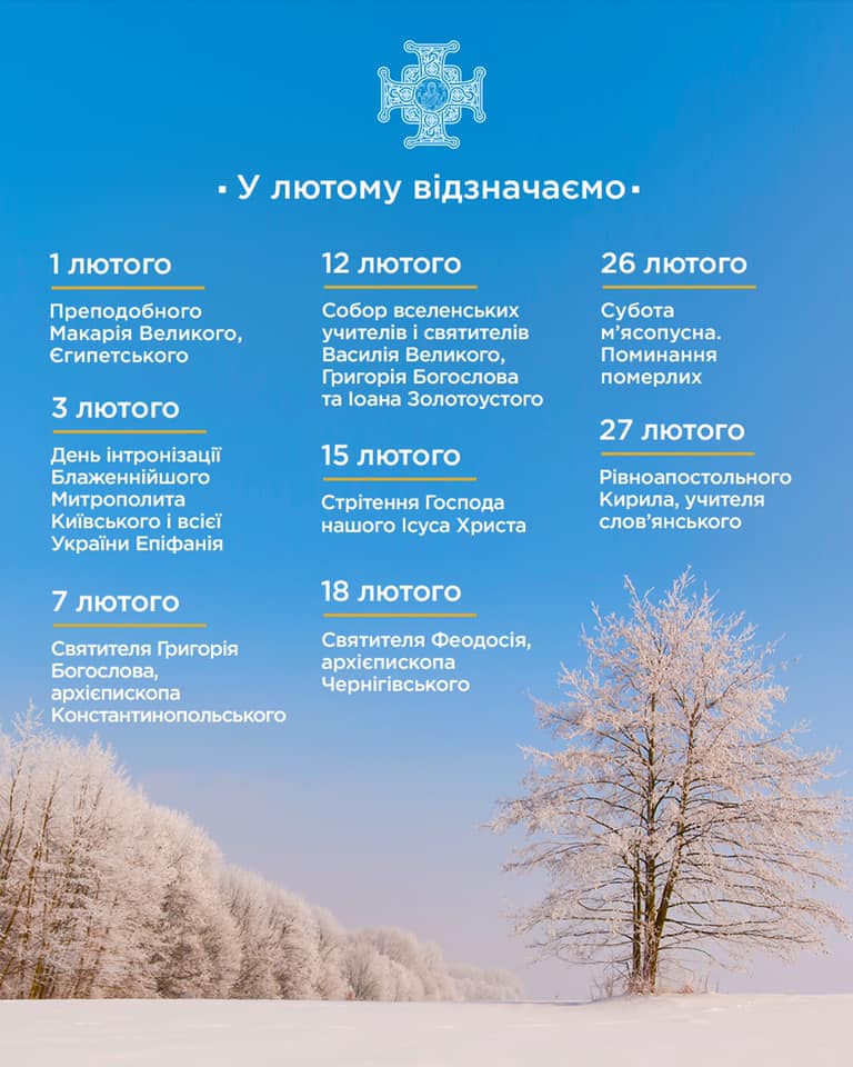 У лютому 2022 року православні українці відзначатимуть одразу 32 церковні свята. Головні з них:
