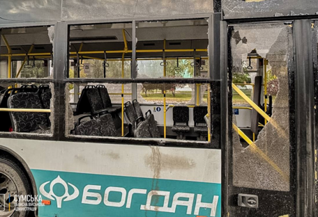 Під ранкову атаку ворога у Сумах також потрапив тролейбус. За допомогою до медиків звернулися пасажир та водійка. Їм надали необхідну допомогу на місці.